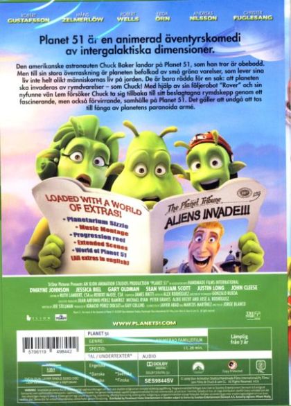 When Earth astronaut Capt. Chuck Baker arrives on Planet 51 -- a world reminiscent of American suburbia circa 1950 -- he tries to avoid capture, recover his spaceship and make it home safely, all with the help of an empathetic little green being.
