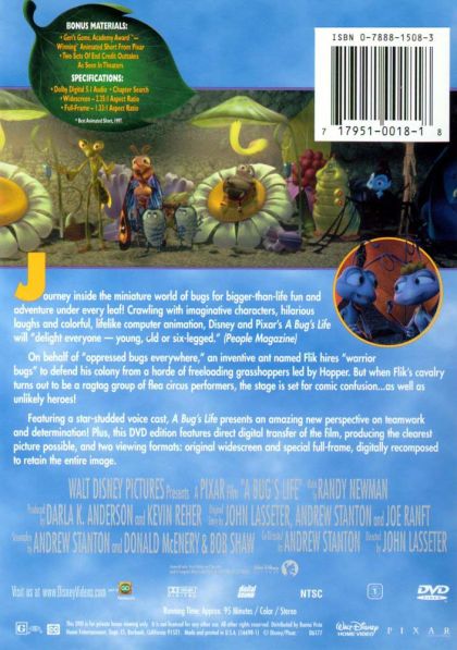 On behalf of "oppressed bugs everywhere," an inventive ant named Flik hires a troupe of warrior bugs to defend his bustling colony from a horde of freeloading grasshoppers led by the evil-minded Hopper.