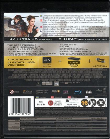 A zombie outbreak has fallen upon the land in this reimagining of Jane Austen’s classic tale of the tangled relationships between lovers from different social classes in 19th century England. Feisty heroine Elizabeth Bennet (Lily James) is a master of martial arts and weaponry and the handsome Mr. Darcy (Sam Riley) is a fierce zombie killer, yet the epitome of upper class prejudice. As the zombie outbreak intensifies, they must swallow their pride and join forces on the blood-soaked battlefield in order to conquer the undead once and for all.