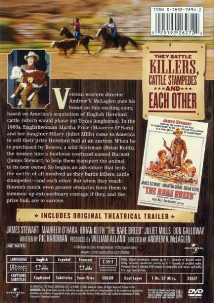 When her husband dies en route to America, Martha Price and her daughter Hilary are left to carry out his dream: the introduction of Hereford cattle into the American West. They enlist Sam "Bulldog" Burnett in their efforts to transport their lone bull, a Hereford named Vindicator, to a breeder in Texas, but the trail is fraught with danger and even Burnett doubts the survival potential of this "rare breed" of cattle.