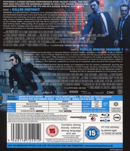 Jacques Mesrine, a loyal son and dedicated soldier, is back home and living with his parents after serving in the Algerian War. Soon he is seduced by the neon glamour of sixties Paris and the easy money it presents. Mentored by Guido, Mesrine turns his back on middle class law-abiding and soon moves swiftly up the criminal ladder.