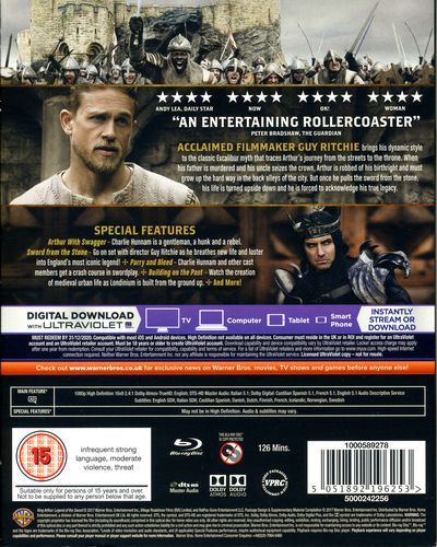 When the child Arthur’s father is murdered, Vortigern, Arthur’s uncle, seizes the crown. Robbed of his birthright and with no idea who he truly is, Arthur comes up the hard way in the back alleys of the city. But once he pulls the sword Excalibur from the stone, his life is turned upside down and he is forced to acknowledge his true legacy... whether he likes it or not.