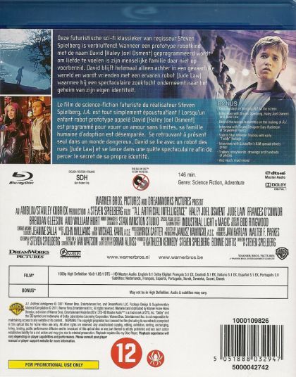 | Extras | Documentary on bringing A.I. to the screen Intervieuws with Steven Spielberg, Haley Joel Osment and |