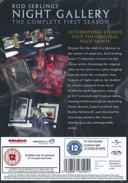 Night Gallery was creator-host Rod Serling's follow-up to The Twilight Zone. Set in a shadowy museum of the outre, Serling weekly unveiled disturbing portraiture as preface to a highly diverse anthology of tales in the fantasy-horror vein. Bolstering Serling's thoughtful original dramas were adaptations of classic genre material--short stories by such luminaries as H. P. Lovecraft, Fritz Leiber, A.E. van Vogt, Algernon Blackwood, Conrad Aiken, Richard Matheson, August Derleth, and Christianna Brand. Variety of material brought with it a variety of tone, from the deadly serious to the tongue-in-cheek, stretching the television anthology concept to its very limits.