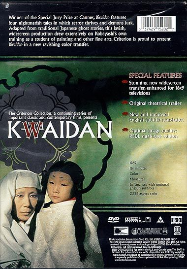 Taking its title from an archaic Japanese word meaning "ghost story," this anthology adapts four folk tales. A penniless samurai marries for money with tragic results. A man stranded in a blizzard is saved by Yuki the Snow Maiden, but his rescue comes at a cost. Blind musician Hoichi is forced to perform for an audience of ghosts. An author relates the story of a samurai who sees another warrior's reflection in his teacup.