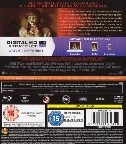 | Extras | The Curse of Annabelle Bloody Tears of Possession Dolls of the Demon A Demonic Process Deleted Scene |