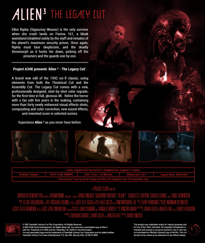 This new edit "The Legacy Cut" is a mixture of the 1992 cinema version and the "Assembly Cut", which was released in 2003 with the DVD box set "Alien Quadrilogy"