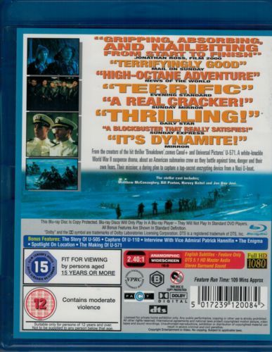 In the midst of World War II, the battle below the seas rages. The Nazi's have the upper edge as the Allies are unable to crack their war codes. That is, until a wrecked U-boat sends out an SOS signal, and the Allies realise this is their chance to seize the 'enigma coding machine'. But masquerading as Nazi's and taking over the U-boat is the smallest of their problems..