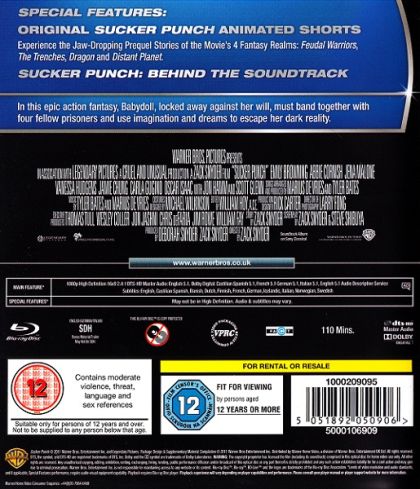 Sucker Punch is a 2011 action-fantasy thriller film, about the fantasies of a young woman who is committed to a mental institution. It was written by Steve Shibuya and Zack Snyder and directed by Snyder. The film features an ensemble cast starring Emily Browning as the central character (Babydoll)and Abbie Cornish as the second main character (Sweet Pea), as well as Oscar Isaac (Blue).The film was released in both conventional and IMAX theatres in the US at midnight on March 25, 2011.A young girl is institutionalized by her wicked stepfather. Retreating to an alternative reality as a coping strategy, she envisions a plan which will help her escape from the facility.