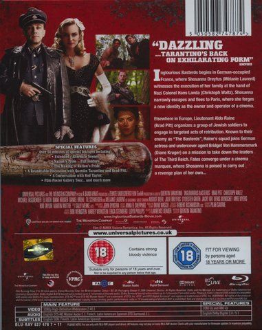 In Nazi-occupied France during World War II, a group of Jewish-American soldiers known as "The Basterds" are chosen specifically to spread fear throughout the Third Reich by scalping and brutally killing Nazis. The Basterds, lead by Lt. Aldo Raine soon cross paths with a French-Jewish teenage girl who runs a movie theater in Paris which is targeted by the soldiers.