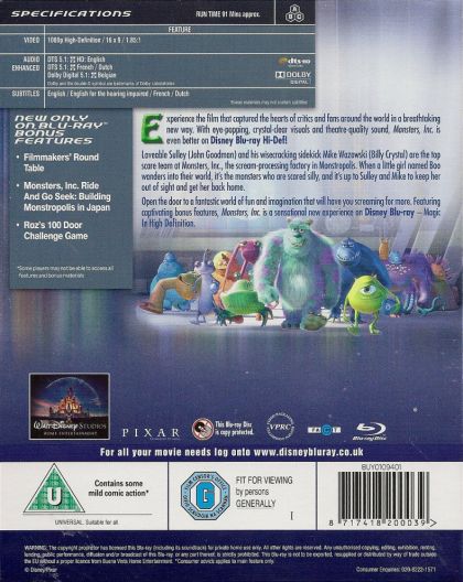 Lovable Sulley and his wisecracking sidekick Mike Wazowski are the top scare team at Monsters, Inc., the scream-processing factory in Monstropolis. When a little girl named Boo wanders into their world, it's the monsters who are scared silly, and it's up to Sulley and Mike to keep her out of sight and get her back home.