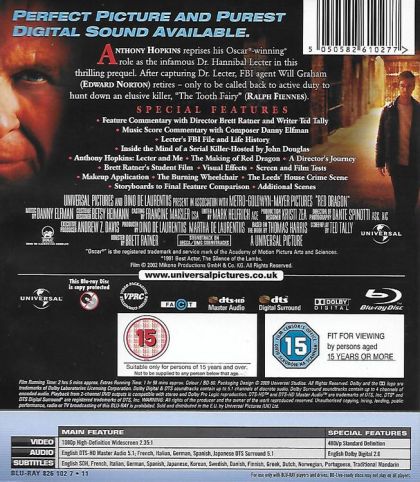 Former FBI agent Will Graham, who was once nearly killed by the savage Hannibal "The Cannibal" Lecter now has no choice but to face him again. It seems Lecter is the only one who can help Graham track down a new serial killer, Francis Dolarhyde -- but can he be trusted?