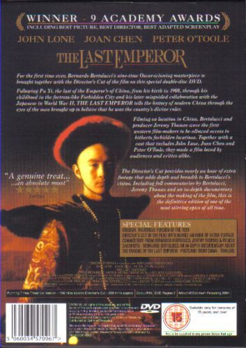 The Last Emperor is a monumental film about the life of the last emperor of the Chinese Quinn dynasty. Director Bertolucci illustrates the life of Pu-Yi who was crowned emperor at the age of two only to lose it at the age of five. The film won a total of nine Oscars in 1987.