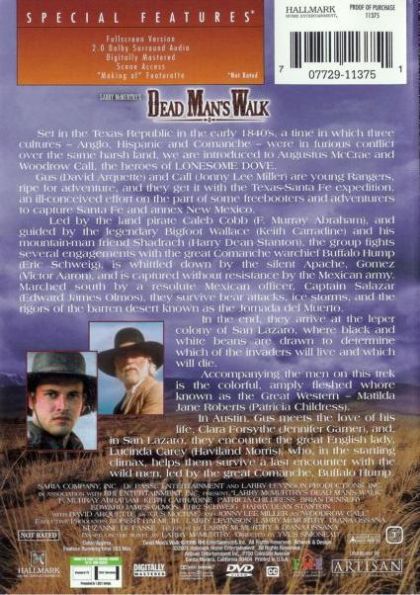 Dead man's Walk is the beginning of the Lonesome Dove Saga. Gus McCrae and Woodrow Call are just starting out in the Texas Rangers and have no idea of what they are doing for Call it's Duty above all else. For Gus it's the thrill of adventure. Both men don't know just how much danger and death await for them on their first patrol. Jonny Lee Miller and David Arquitte do a fine job as Gus and Call. Miller in particular carries the movie on his shoulders his portrayal of Call is very good. the rest of the cast is outstanding Keith Carradine deserves special mention for his role as Bigfoot Wallace he adds to the movie greatly. A outstanding movie which adds and enhances the Lonesome Dove saga This is a fantastic beginning to an legendary tale of heroes and incredible story telling