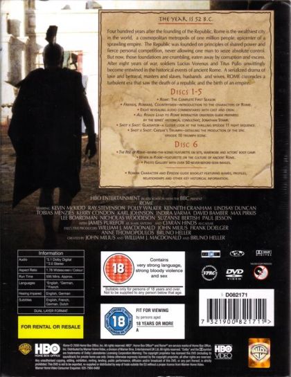 In this British costume drama, the turbulent transition from Roman republic to autocratic empire, which changed world history through civil war and wars of conquest, is sketched both from the aristocratic viewpoint of Julius Caesar, his family, his adopted successor Octavian Augustus, and their political allies and adversaries, and from the politically naive viewpoint of a few ordinary Romans, notably the soldiers Lucius Vorenus and Titus Pullo and their families.