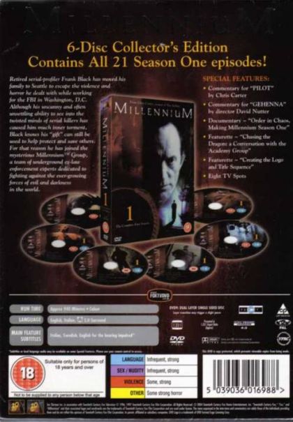 Frank has a special ability to see into the minds of serial killers. Working for a mysterious organization called the Millennium Group, who take a special interest in serial killers and the millennial end of the world prophecy. During the first season, Frank lives with his wife Catherine and daughter Jordan in Seattle. The show focuses on Frank's work as a profiler. The first season focuses most of Franks' time trying to solve serial murder cases. During the second season, the show primarily on Frank's relationship with the Millennium Group. After separating from his wife after a violent rescue of her from a stalker. Frank learns that the Millennium Group is a secret society that believes that the world is coming to an end. During this season, Frank spends much of his time working with Millennium Group member Peter Watts and fellow investigator Laura Means. After the death of his wife at the end of the second season, Frank severs all connection with the Millennium Group and returns to work with the FBI. With the help of special agent Emma Hollis, he begins to investiagate the Millennium Group itself.