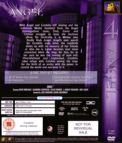 "If you need help, then look no further. Angel Investigations is the best. Our rats are low... (What? It says "rats." Sorry.) Ahem... our rates are low, but our standards are high. When the chips are down, and you're at the end of your rope you need someone that you can count on. And that's what you'll find here -- someone that will go all the way, no matter what. So don't lose hope. Come on over to our offices and you'll see that there's still heroes in this world." For over two centuries, Angelus was one of the most vicious vampires ever to walk the earth. Then he killed the wrong girl, and her grieving Gypsy family cursed the vampire with the return of his soul, causing him to suffer with remorse for all the hundreds of innocents that he had killed through the years. Now he goes by the name Angel, and he fights to protect the helpless from those who would prey upon them as he himself once did.