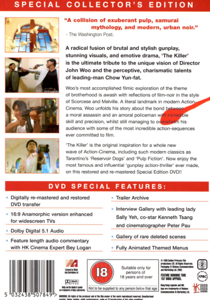 In this bloody tale of loyalty and friendship, Chow Yun-Fat is Jeffrey, an assassin who wishes to leave the business so he can take care of Jennie, the beautiful lounge singer who he inadvertently blinded during a previous assignment. Danny Lee is the determined cop who will stop at nothing to bring him in, only he realizes that Jeffrey is no ordinary assassin, and wishes to help him in his quest. Only problem is that Jeffrey's employers refuse to pay him for his last job, money which is needed to restore Jennie's eyesight.