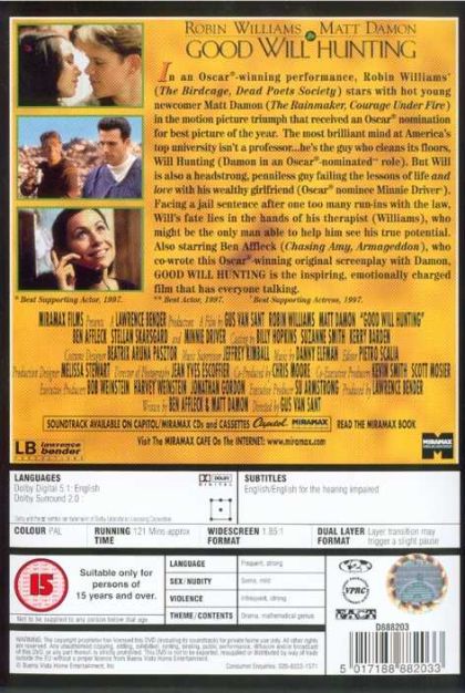 Gus van Sant’s film tells the story of a mathematically gifted young man, named Will Hunting, who’s on the search for his identity while ruthlessly eluding his fellow friends. His first introspective look at himself is achieved after meeting with the therapist Sean Maguire.