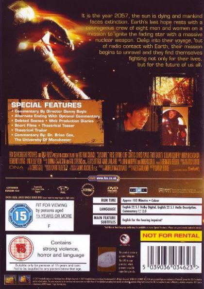 50 years from now the sun is dying and life on earth is threatened by arctic temperatures. Mankind puts together all its resources and sends a spaceship towards the sun. Its payload - a huge bomb. The spaceship is the second of its kind. The first one was lost on its way to the sun ...