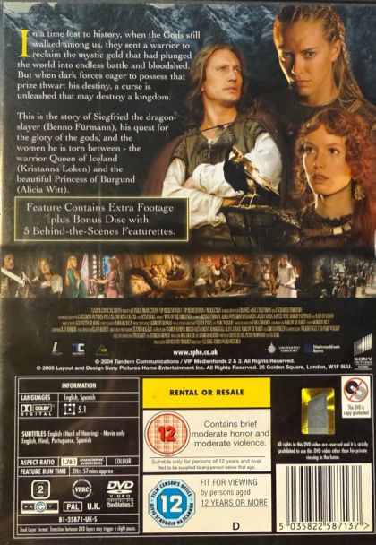 “Ring of the Nibelungs" is a story based on the Germanic legend of “Das Nibelungenlied" telling a tale about a young blacksmith named Siegfried (Benno Fürmann). Siegfried is unaware but he is the heir to a once conquered kingdom sets out to make good with King Gunther (Samuel West) and slay the kingdom’s bane, the dragon Fafnir. The king wishes to reward Siegfried for his bravery and bestows onto him the hoard of treasure from the dragon’s lair. Siegfried accepts and ignores the curse that comes along with the treasure, a curse that now has swept the land and endangers his true love the exotic Norse warrior queen Brunhild (Kristanna Løken).