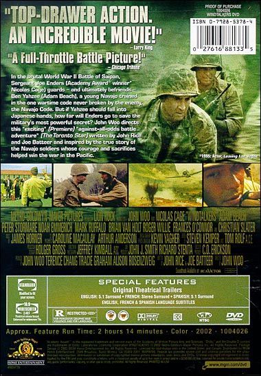 Joe Enders is a gung-ho Marine assigned to protect a "windtalker" - one of several Navajo Indians who were used to relay messages during World War II because their spoken language was indecipherable to Japanese code breakers.