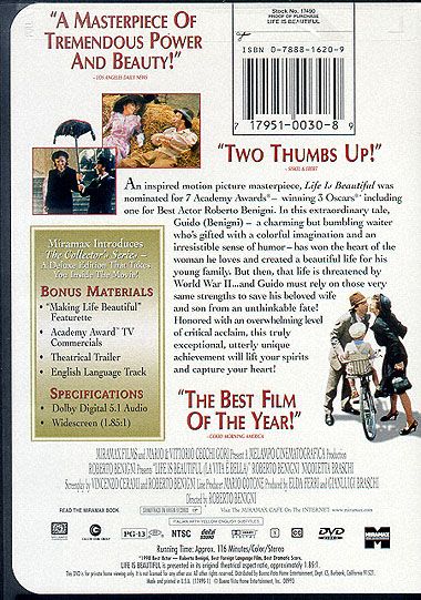 A touching story of an Italian book seller of Jewish ancestry who lives in his own little fairy tale. His creative and happy life would come to an abrupt halt when his entire family is deported to a concentration camp during World War II. While locked up he tries to convince his son that the whole thing is just a game.