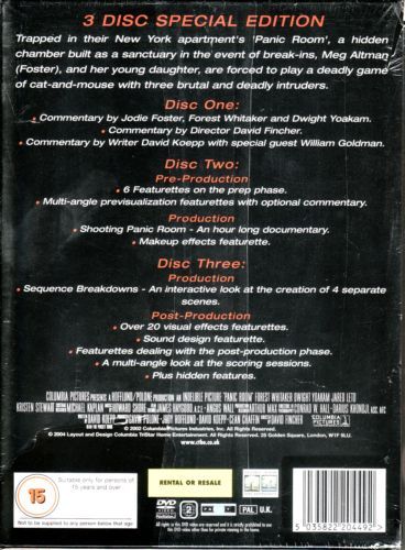 This claustrophobic thriller centers on a divorcée and her daughter who are caught in a deadly game of cat-and-mouse with three burglars in their New York City brownstone, retreating to the vault-like safety of their aptly named panic room. As the intruders try to breach the room's security, the embattled duo must stay one step ahead.