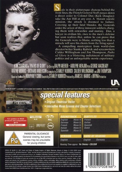 Paths of Glory Paths of Glory is an anti-war film from Stanley Kubrick starring Kirk Douglas. The film takes place during World War I.