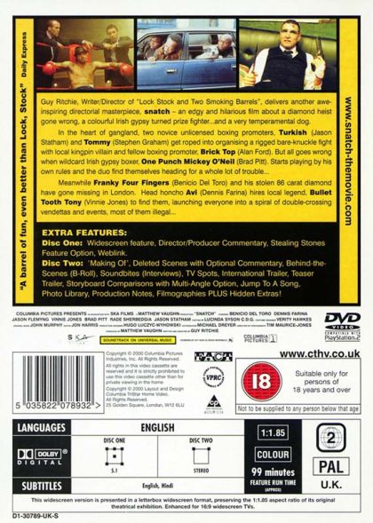 The is second film from British director Guy Ritchie. Snatch tells an obscure story similar to his first fast paced crazy character colliding filled film “Lock, Stock & Two Smoking Barrels.” The film has two overlapping stories– one is the search for a stolen diamond and the other about a boxing promoter who’s having trouble with a psychotic gangster.