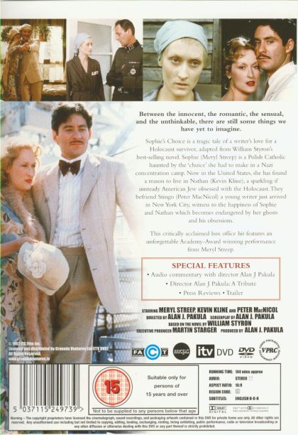 Sophie is the survivor of Nazi concentration camps who has found a reason to live in Nathan a sparkling if unsteady American Jew obsessed with the Holocaust. They befriend Stengo the movies narrator a young American writer new to New York City. But the happiness of Sophie and Nathan is endangered by her ghosts and his obsessions.