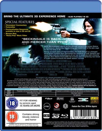 After being held in a coma-like state for fifteen years, vampire Selene (Kate Beckinsale) learns that she has a fourteen-year-old vampire/Lycan hybrid daughter, Nissa, and when she finds her, they must stop BioCom from creating super Lycans that will kill them all.