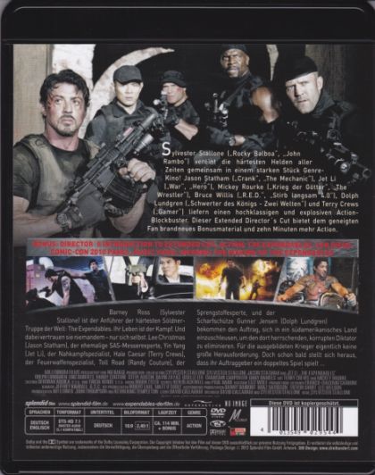 Barney Ross (Stallone) leads a band of highly skilled mercenaries including knife enthusiast Lee Christmas (Statham), a martial arts expert, heavy weapons specialist, demolitionist, and a loose-cannon sniper. When the group is commissioned by the mysterious Mr. Church to assassinate the dictator of a small South American island, Barney and Lee visit the remote locale to scout out their opposition and discover the true nature of the conflict engulfing the city.