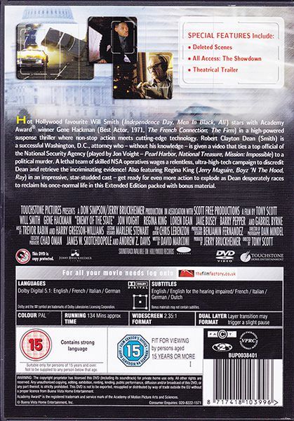 Hotshot Washington lawyer Robert Dean becomes a victim of high-tech identity theft when a hacker slips an incriminating video into his pocket. Soon, a rogue National Security agent sets out to recover the tape -- and destroy Dean.