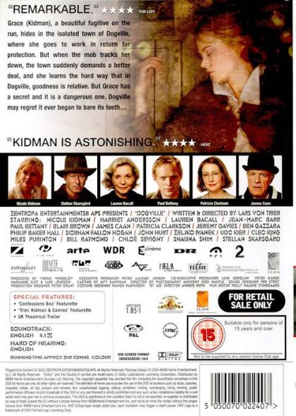 Director Lars von Trier depicts the vivid moral informative film about the ruthlessness of civil society. Filmed in a minimalist style, that until recently was unrecognized, the Danish filmmaker depicts the quite familiar themes of guilt and forgiveness, good and evil, and the moral chasm of humanity.