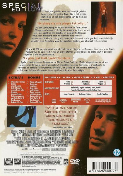 Dr. Kurtzweil, a man full of secrets, gives FBI agent Mulder clues about a conspirator group that has a secret pact with aliens to invade the world. Mulder together with his partner agent Scully go on the case. This is the film adapted from the popular cult TV series.