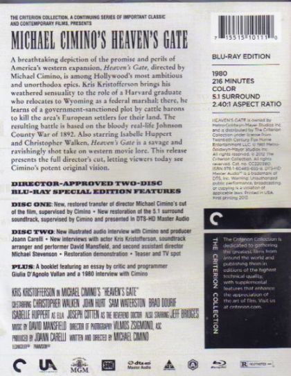 Michael Cimino's bleak anti-western based on events in 1890s Wyoming. Sheriff James Averill attempts to protect immigrant farmers from wealthy cattle interests, and also clashes with a hired gun, Nathan Champion, over the woman they both love, Ella Watson. Both men find themselves questioning their roles in the furious conflict between wealthy landowners and European immigrants attempting to build new lives on the American frontier, which culminates in a brutal pitched battle.