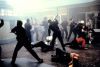 After a visit with his sons, Schillinger realizes he needs to get paroled. He convinces McManus to let him return to Em City with the condition that he leaves Beecher alone. Beecher comes out of the hole hell-bent on making sure Schillinger doesn't get paroled. McManus gets wind of Wittlesey and Ross' contraband operation and orders her to shut it down. Ross makes it very clear to her that this will not happen. The Muslims meet and discuss how the riot will begin. However, two rednecks beat them to it by fighting over a game of checkers. This causes all the inmates to get involved and they quickly overpower the COs who are trying to break it up. Said orders the Muslims to get out and seize control. Said pulls out the gun he acquired from a rookie CO and fires a shot into the air, causing Em City to quiet down. Said meets with Ross, Adebisi, O'Reily and Alvarez to discuss strategy and demands. Said agrees to let O'Reily, Ross and Adebisi control the main gate and Alvarez will control the hostages. Dobbins was seriously injured during the initial uprising and Hill convinces Vayhue to step up and help. Vayhue and Dobbins leave Em City only to be beaten up by SORT. The hostages require medical attention, so Alvarez and Said vote in favor of a doctor. However, Adedisi, Ross and O'Reily vote no. Governor Devlin orders the National Guard to surround the prison and take it back, but Glynn and McManus think they should see the demands first. McManus volunteers, to Devlin's disgust, to enter Em City to deliver food and check on the hostages. He tries to get COs Armstrong, Mineo and Wittlesey free in exchange for himself. He gets Armstrong and Mineo released, due to their injuries but Wittlesey has to stay. After reading the demands, Glynn realizes that the prisoners are being quite reasonable, however Devlin orders the National Guard and SORT to re-take Em City anyway. Meanwhile Ross' men and Adebisi's are constantly fighting, so Said tells O'Reily to switch Ross' men with Alvarez's at the front gate. A short tie later, Adebisi's men start to fiend due to the depletion of heroin, resulting in a major skirmish. Just as that situation is resolved and the Homeboys are tied up, the lights go out. Said realizes the situation and orders Ross to bring out the hostages as a front line of defense. Soon tear gas is thrown into Em City, then a tractor breaks through the barricade and gunfire rings out in Em City.