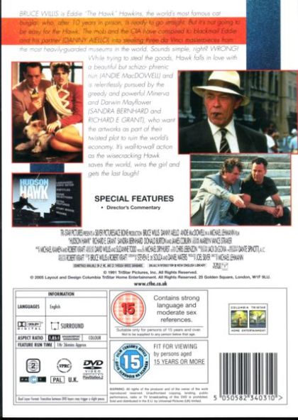 Eddie Hawkins, called Hudson Hawk has just been released from ten years of prison and is planning to spend the rest of his life honestly. But then the crazy Mayflower couple blackmail him to steal some of the works of Leonardo da Vinci. If he refuses, they threaten to kill his friend Tommy.