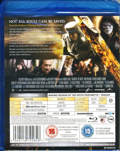 Nicolas Cage stars as a 14th century Crusader who returns with his comrade (Ron Perlman) to a homeland devastated by the Black Plague. A beleaguered church, deeming sorcery the culprit of the plague, commands the two knights to transport an accused witch (Claire Foy) to a remote abbey, where monks will perform a ritual in hopes of ending the pestilence.