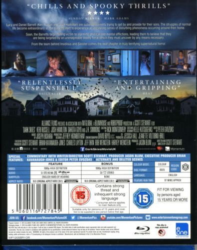 From the producers of Paranormal Activity, Insidious, and Sinister comes Dark Skies: a supernatural thriller that follows a young family living in the suburbs. As husband and wife Daniel and Lacey Barret witness an escalating series of disturbing events involving their family, their safe and peaceful home quickly unravels. When it becomes clear that the Barret family is being targeted by an unimaginably terrifying and deadly force, Daniel and Lacey take matters in their own hands to solve the mystery of what is after their family.