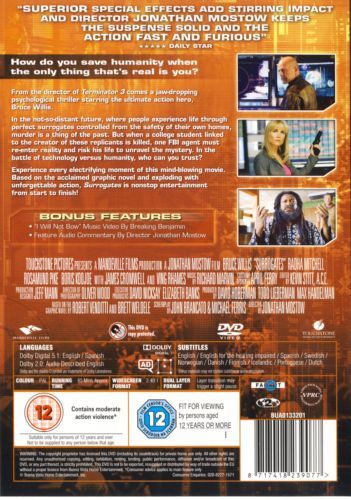 Set in a futuristic world where humans live in isolation and interact through surrogate robots, a cop (Willis) is forced to leave his home for the first time in years in order to investigate the murders of others' surrogates.