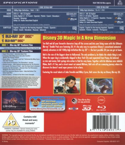 Bolt is the star of the biggest show in Hollywood. The only problem is, he thinks the whole thing is real. When the super dog is accidentally shipped to New York City and separated from Penny, his beloved co-star and owner, Bolt springs into action to find his way home. Together with hilarious new sidekick Rhino, Bolt's #1 fan, and a street-smart cat named Mittens, Bolt sets off on an amazing journey where he discovers he doesn't need super powers to be a hero.