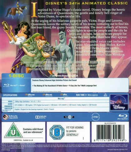 Isolated bell-ringer Quasimodo wishes to leave Notre Dame tower against the wishes of Judge Claude Frollo, his stern guardian and Paris' strait-laced Minister of Justice. His first venture to the outside world finds him Esmeralda, a kind-hearted and fearless Romani woman who openly stands up to Frollo's tyranny.