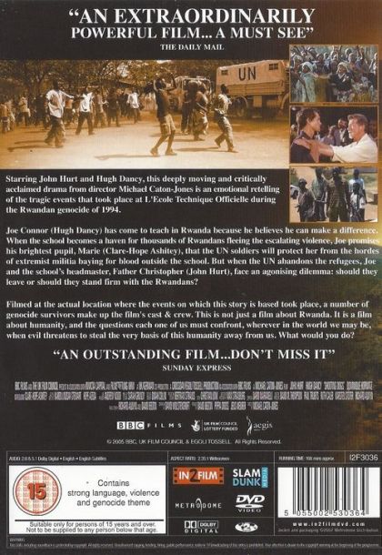 Two westerners, a priest and a teacher find themselves in the middle of the Rwandan genocide and face a moral dilemna. Do they place themselves in danger and protect the refugees, or escape the country with their lives? Based on a true story.