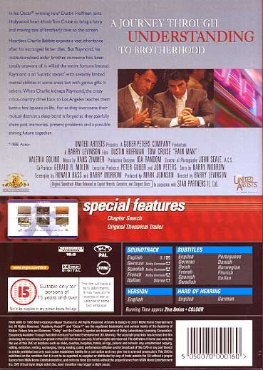 The sensible drama about the reunification of two very different brothers and their struggle to stay together. Dustin Hoffman won an Oscar for best actor for his memorable performance as the autistic Raymond.