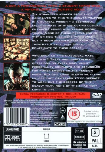 The claustrophobic debut of Canadian director Vincenzo Natali takes seven strangers out of their daily lives and places them mysteriously in a deadly cube where they all agree they must find their way out. A mix of thriller and psychodrama and a small budget film that gained cult status.