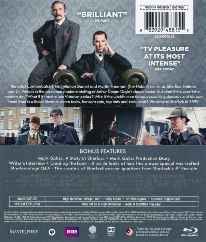 Benedict Cumberbatch (The Imitation Game) and Martin Freeman (The Hobbit) return as Sherlock Holmes and Dr. Watson in the acclaimed modern retelling of Arthur Conan Doyle's classic stories. But what if this wasn't the modern day? What if it was the late Victorian period? What if the world's most famous consulting detective and his best friend lived in a Baker Street of steam trains, hansom cabs, top hats and frock-coats? Welcome to Sherlock in 1895!