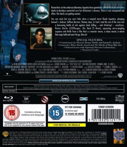 With a voracious trio of mako sharks wreaking havoc, Deep Blue Sea dares to up the ante on Jaws, but director Renny Harlin trades the nuanced suspense of Spielberg's 1975 blockbuster for the trickery of the digital age. In other words, why build genuine terror when you can show ill-fated humans getting torn into bloody chunks? The aforementioned makos have been lab rats in an effort to harvest a m