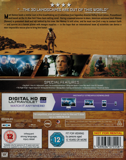 During a manned mission to Mars, Astronaut Mark Watney is presumed dead after a fierce storm and left behind by his crew. But Watney has survived and finds himself stranded and alone on the hostile planet. With only meager supplies, he must draw upon his ingenuity, wit and spirit to subsist and find a way to signal to Earth that he is alive.